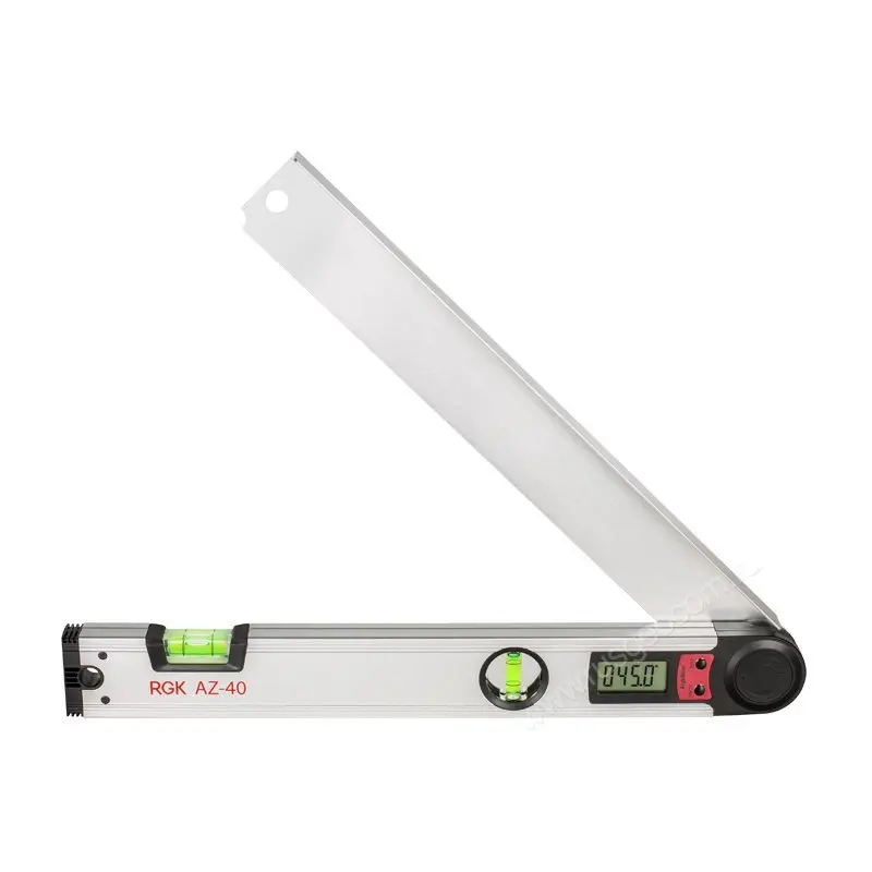 Электронный угломер RGK AZ-40 - измеряет угловые значения в диапазоне от 0° до 225° с отображением результатов на цифровой экран. С помощью угломера вы можете измерить как абсолютные угловые значения, так и относительные.