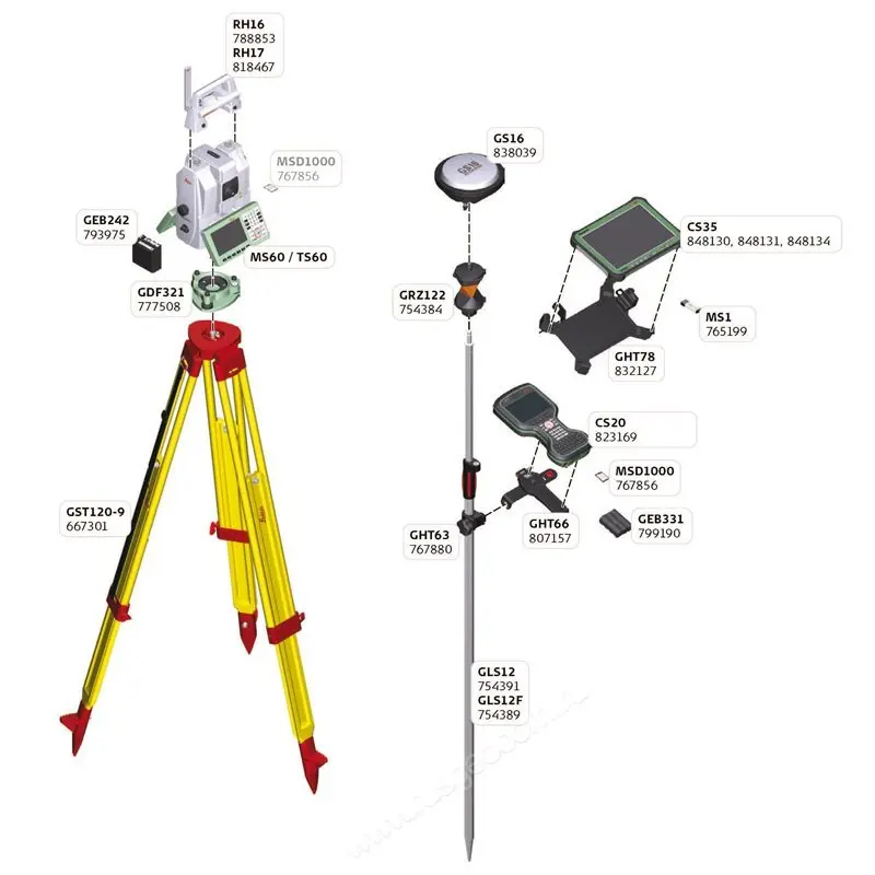 Поддержка интеграции с GNSS-оборудованием позволяет быстро выносить опорные точки. Приемник устанавливается на тахеометр Leica MS60 1’’ и синхронизируется с ним, что помогает получить координаты и высоты.
