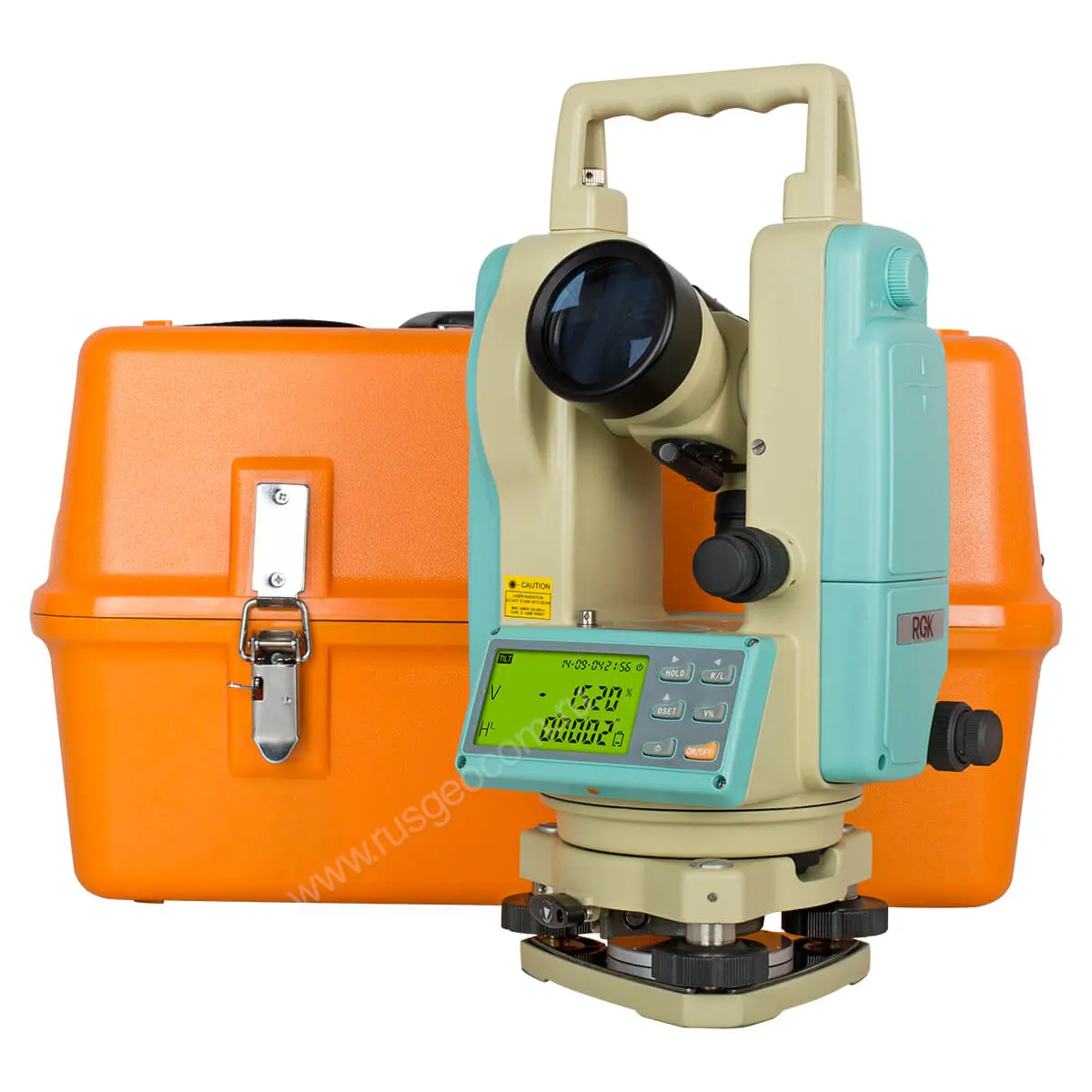 Электронный теодолит RGK T-20 подходит для решения самых разнообразных задач в сферах геодезии, строительства, землеустройства, кадастра, лесомелиорации и многих других: Средняя квадратическая ошибка угловых измерений составляет 20''. 30-кратное увеличение зрительной трубы в совокупности с прогрессивной системой отсчета горизонтальных и вертикальных углов обеспечивают стабильность получаемых результатов.