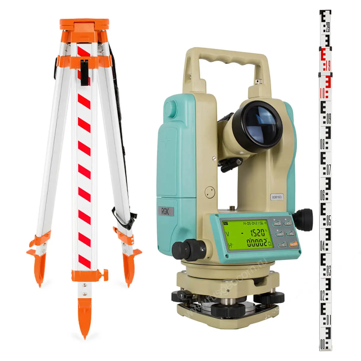 Комплект теодолит RGK T-05 (лазерный отвес) с поверкой штатив рейка - 3 в 1