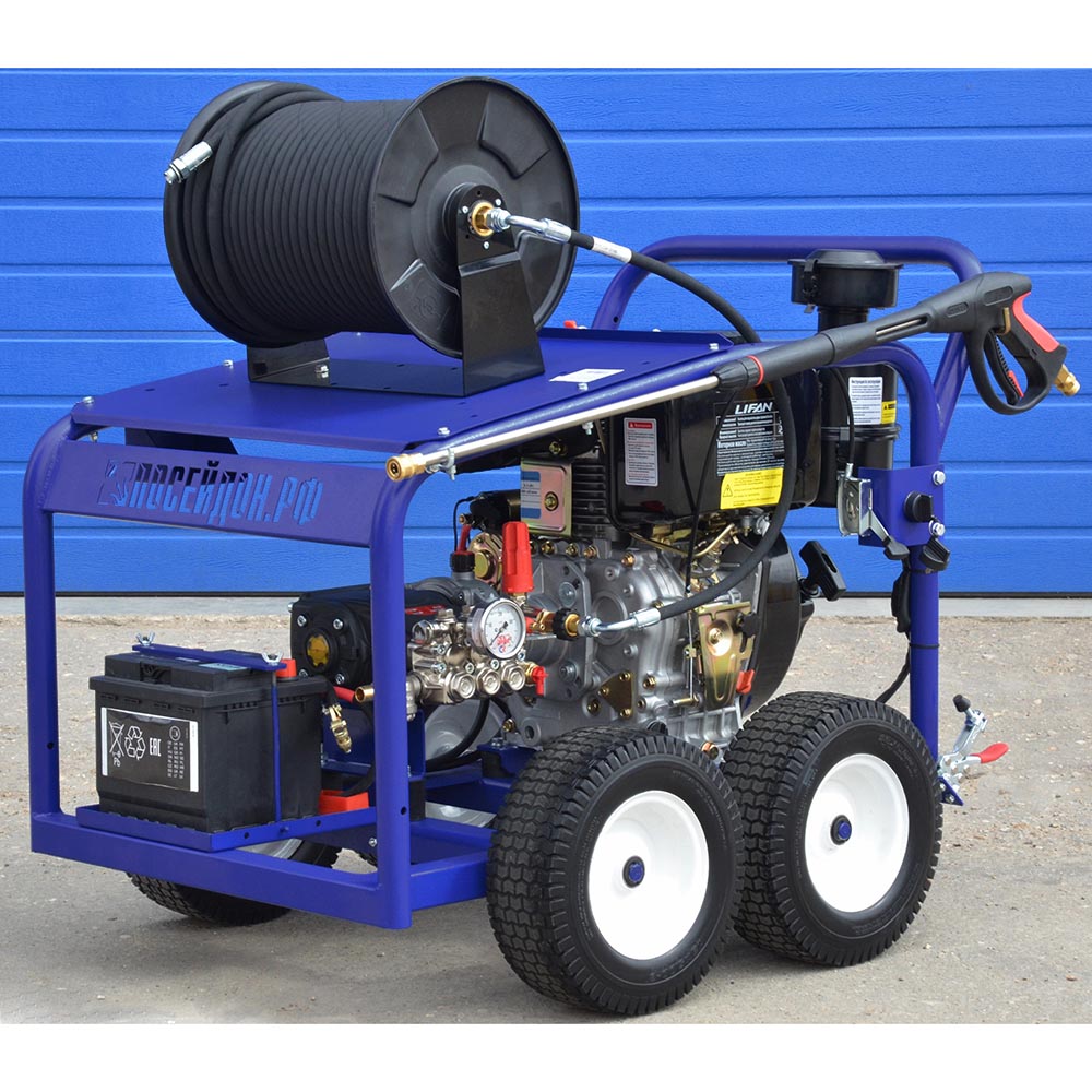 Аппарат высокого давления «Посейдон» производится на базе бензинового двигателя и надежного насоса высокого давления. Компактный и удобный в использовании аппарат с оптимальными рабочими характеристиками для высококачественной профессиональной очистки труб и мойки поверхностей. Профессиональный аппарат для подрядных организаций, ЖКХ, водоканалов и промышленных предприятий.