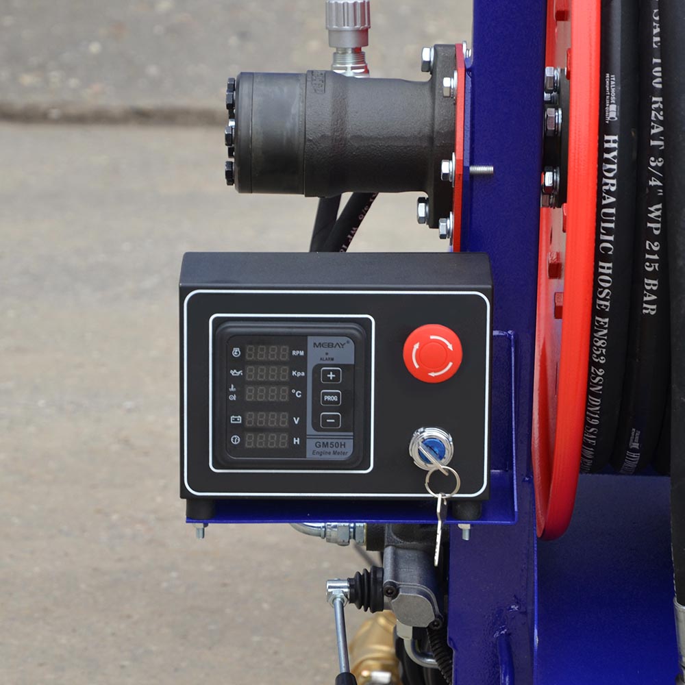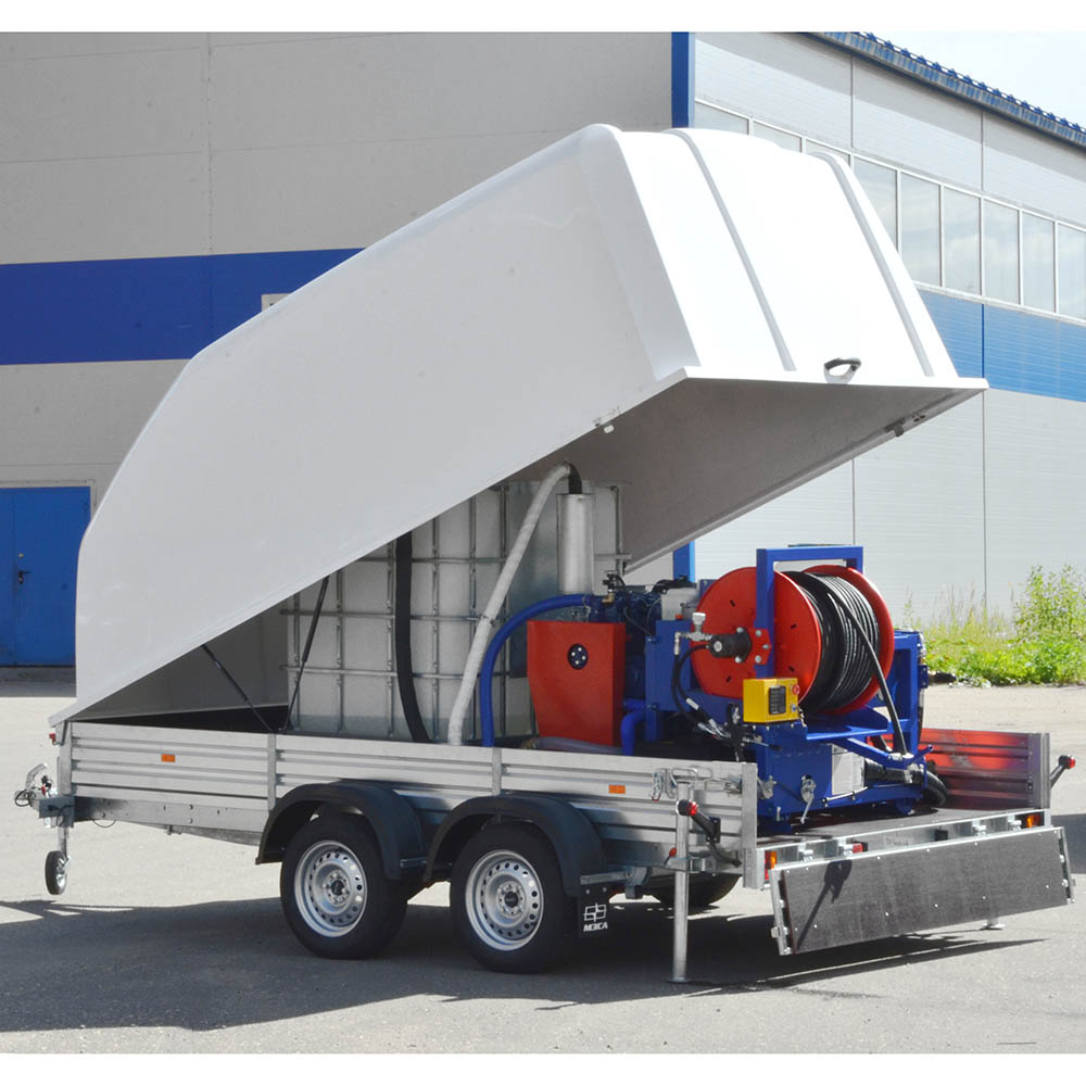 - В стандартной комплектации барабан на поворотной двери, с гидроприводом и регулировкой скорости вращения, со шлангом высокого давления длиной 90 метров
