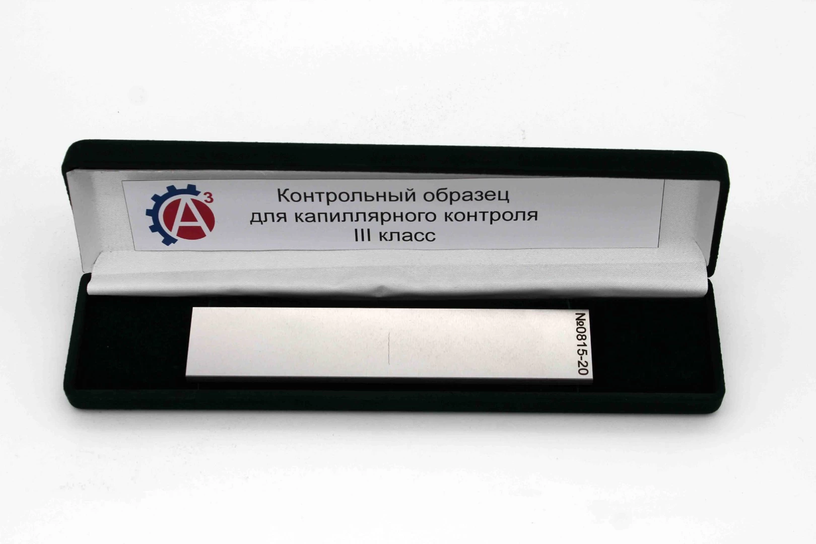 Данный образец предназначен для определения качества пенетрантов при проведении капиллярной дефектоскопии в соответствии с требованиями ГОСТ 18442-80 и унифицированной методики ПНАЭГ-7-018-89, произведено в соответствии с 427620-015-4407661-2016.ТУ.