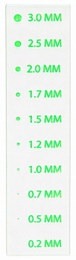 - Прозрачная панель для оценки размеров дефектов в видимом и УФ свете с двумя люминесцентными шкалами 0,01"-0,18" и 0,2мм-4,6". Стандарт Pratt&Whithne.