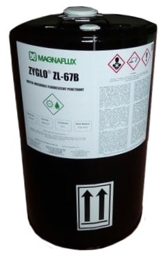 Водосмываемый люминесцентный пенетрант Zyglo® ZL-67B рекомендуется к применению для капиллярного контроля деталей и изделий полученных литьем по выплавляемым моделям, деталей авиационных и ракетных двигателей, а также деталей испытывающих значительные механические и термические нагрузки.