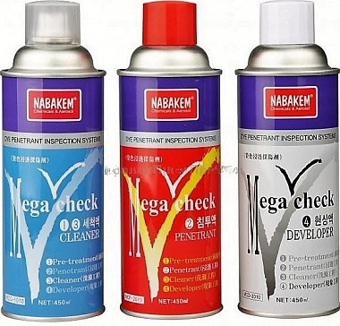 Проявитель Mega Check (аэрозоль 450 мл) —дефектоскопический материал для цветного капиллярного контроля (Type 2, Form E). Проявитель Mega Check предназначен для извлечения пенетранта из поверхностного дефекта с целью образования яркого индикаторного рисунка с одновременным созданием белого контрастирующего фона. Образовавшиеся при этом индикации дефектов можно увидеть невооруженным глазом.