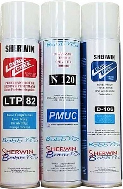 Проведение капиллярного контроля в условиях низких температур осложняется наличием льда и водяного конденсата на контролируемой поверхности. Вода затрудняет проникновение пенетранта и снижает чувствительность контроля. Набор Sherwin низкотемпературный предназначен для проведения цветной (красно-белой) дефектоскопии в условиях пониженной температуры от -30°С до +10°С. Набор включает в себя три аэрозольных баллончика: пенетрант LTP 82, очиститель N 120 и проявитель D-106.