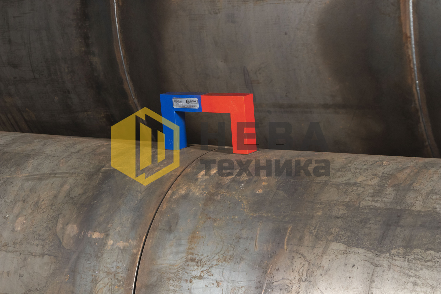 Для размагничивания локального участка стыка необходимо установить магнит таким образом, чтобы стык находился посередине между его полюсами, при этом его магнитное поле должно быть направлено в противоположную сторону остаточному полю трубы.