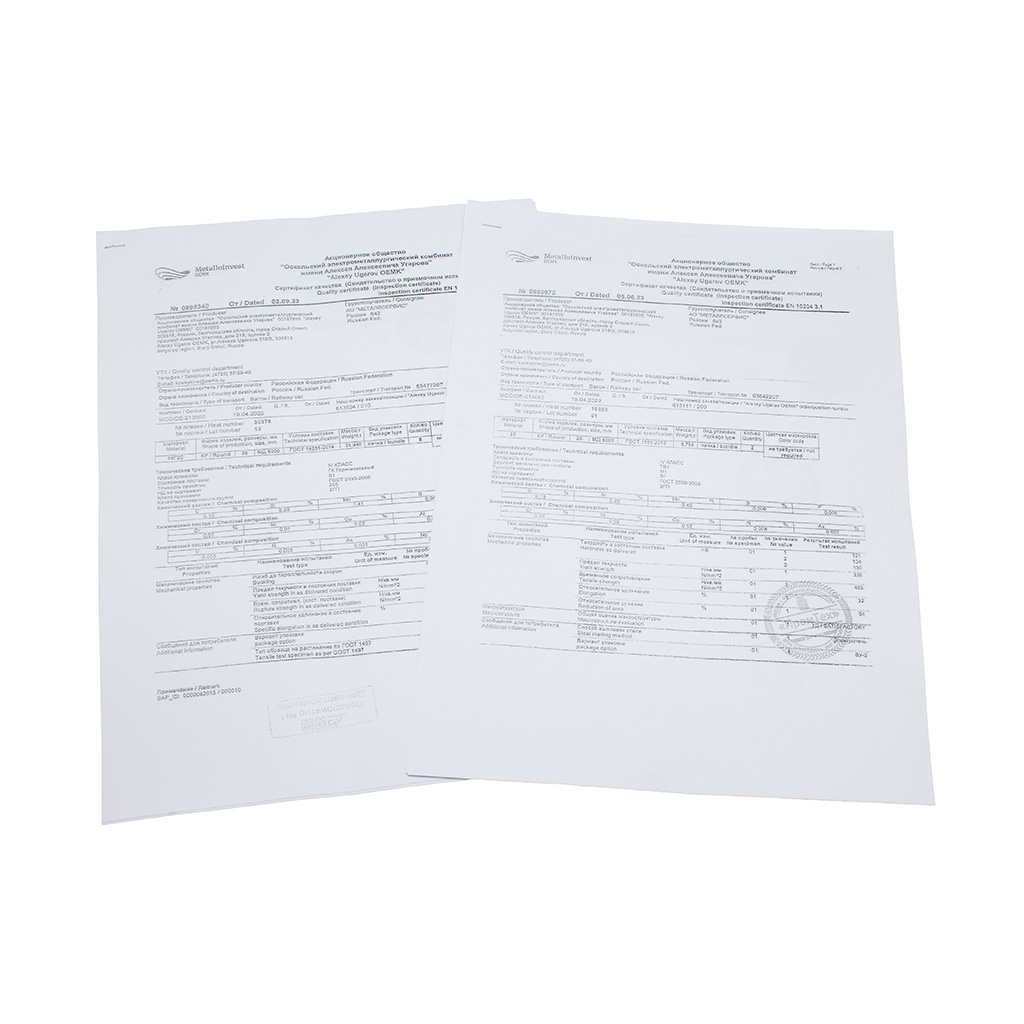 Соответствие указанным маркам и химический состав приведен в паспортах на каждый отдельный образец.