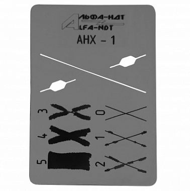 Адгезиметр АНХ-1 изготовлен из пластины нержавеющей стали толщиной около 1,0 мм. В пластине сделана прорезь длиной 50 мм для выполнения реза покрытия и 2 прорези с ромбовидными окошками для удобства совмещения линий надреза.