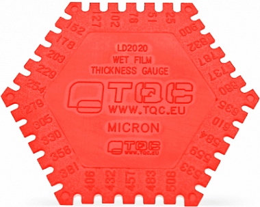 Гексагональные пластиковые гребенки для определения толщины мокрых пленок TQC LD2020. Пластиковая гребенка разработана как средство для экспресс оценки толщины мокрого слоя и может быть представлена по требованию клиента в качестве свидетельств проведенных измерений. Пластиковая гребенка предназначена для одноразового использования.