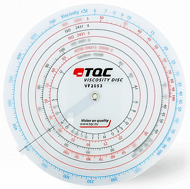 Диск TQC Sheen VF2053 является необходимым устройством пересчета времени вытекания жидкости из чашечного вискозиметра в единицы вязкости. Диск имеет нанесенные на себе шкалы значений вязкости в соответствии с стандартами международных сообществ ISO, DIN, ASTM и т. д., которые будут изменяться в соответствии с временем вытекания тестируемого материала.