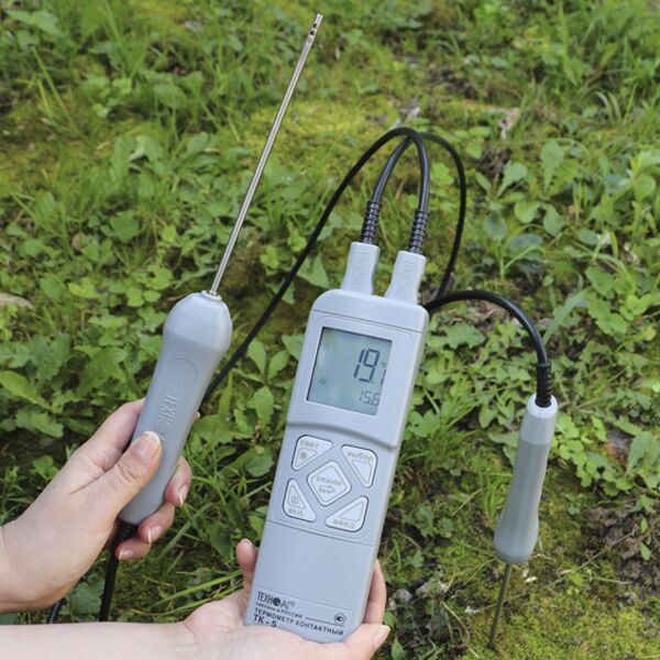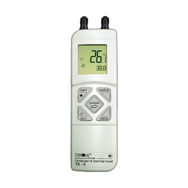 Термометры контактные цифровые "ТК-5.11" предназначенные для измерения температуры различных сред, относительной влажности воздуха путем непосредственного контакта зонда с объектом измерения. Термометры ТК-5.11 являются двухканальным приборами, предусматривающими работу одновременно двумя измерительными зондами. Термометры контактные состоят из электронного блока и сменных зондов. В качестве термочувствительных элементов в зондах используются преобразователи термоэлектрические (ТП) с НСХ по ГОСТ Р 8.585. В качестве измерительного элемента в зондах относительной влажности используются емкостные датчики влажности.