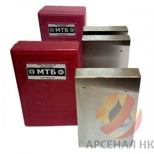 Меры изготавливаются в виде плиток прямоугольной или круглой формы из углеродистой или легированной стали по ГОСТ 9031-75 "Меры твердости образцовые. Технические условия".