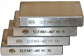 Меры твёрдости изготавливаются в виде плиток прямоугольной формы с одной рабочей поверхностью из качественной углеродистой или легированной стали, метрологические характеристики мер соответствуют ГОСТ 9031-75 «Меры твёрдости образцовые. Технические условия».