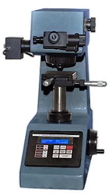 Специальный прибор, предназначенный для измерения параметров твердости различных материалов (стали, чугуна, цветных металлов и мягких сплавов) в полном соответствии с ГОСТ 2999-79 по шкалам Микро-Виккерса (HV) и Кнупа (HK). Благодаря своим характеристикам, твердомер обеспечивает высокую точность и повторяемость результатов, а также широкий диапазон измерений (5-2500 по HV). Стационарный твердомер МЕТОЛАБ 501 оснащен нониусным микрометром. Принцип работы твердомера МЕТОЛАБ 501 основывается на вдавливании алмазного индентора пирамидальной формы с определенным усилием в контролируемую поверхность образца. По прошествии обозначенного времени индентор поднимается. Величина твердости рассчитывается согласно диагонали отпечатка (глубине), либо рассчитывается по формуле.