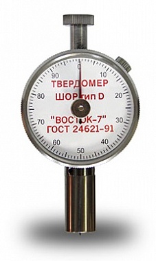 Твердомер (дюрометр) модель ТВР-D предназначен для измерения твёрдости по шкале Шора тип D пластмасс и эбонита в соответствии в ГОСТ 24621-91 (ISO 868-85), ГОСТ Р ИСО 7619-1-2009 в т.ч. твёрдых полиуретанов: плексигласа, полистирола, термопласта, полиграфических валков, пластин из винилацетата целлюлозы и т.п. в соответствии со стандартами DIN EN ISO 868, DIN 53505, ASTM D 2240, ISO 7619, NFT 51-174, BS903 Part. A 26.