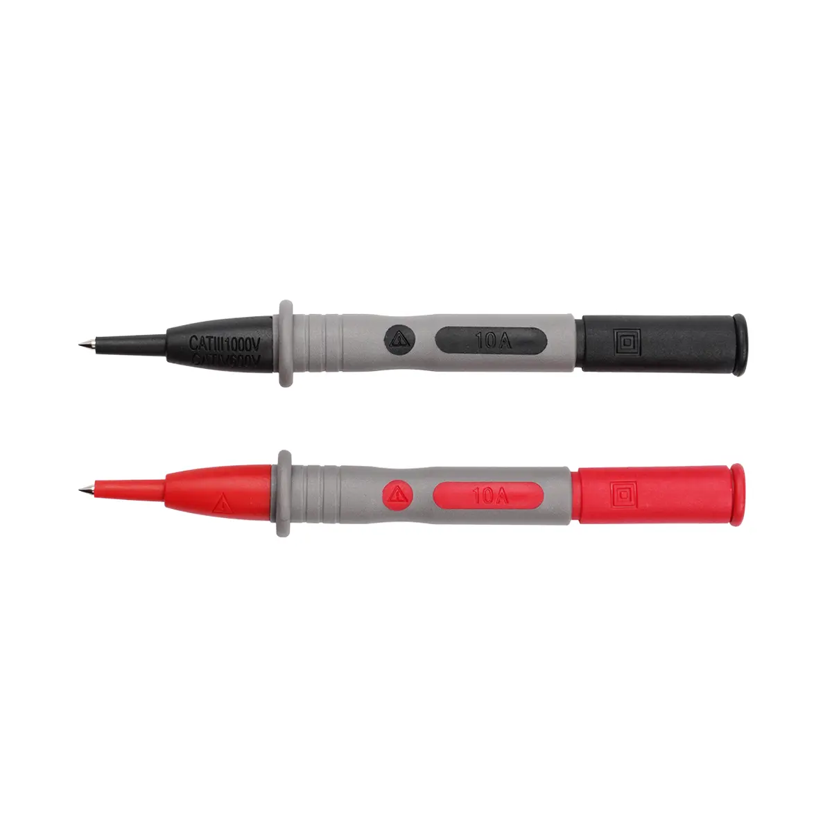 Измерительные щупы RGK TP2-01 - сменные наконечники для измерительных проводов, подключаемых к мультиметру, которые обеспечивают контактное соединение измерительного контура прибора с контрольными точками проверяемого объекта. В комплект включены два щупа красного и черного цвета, а также съемные защитные колпачки к ним.