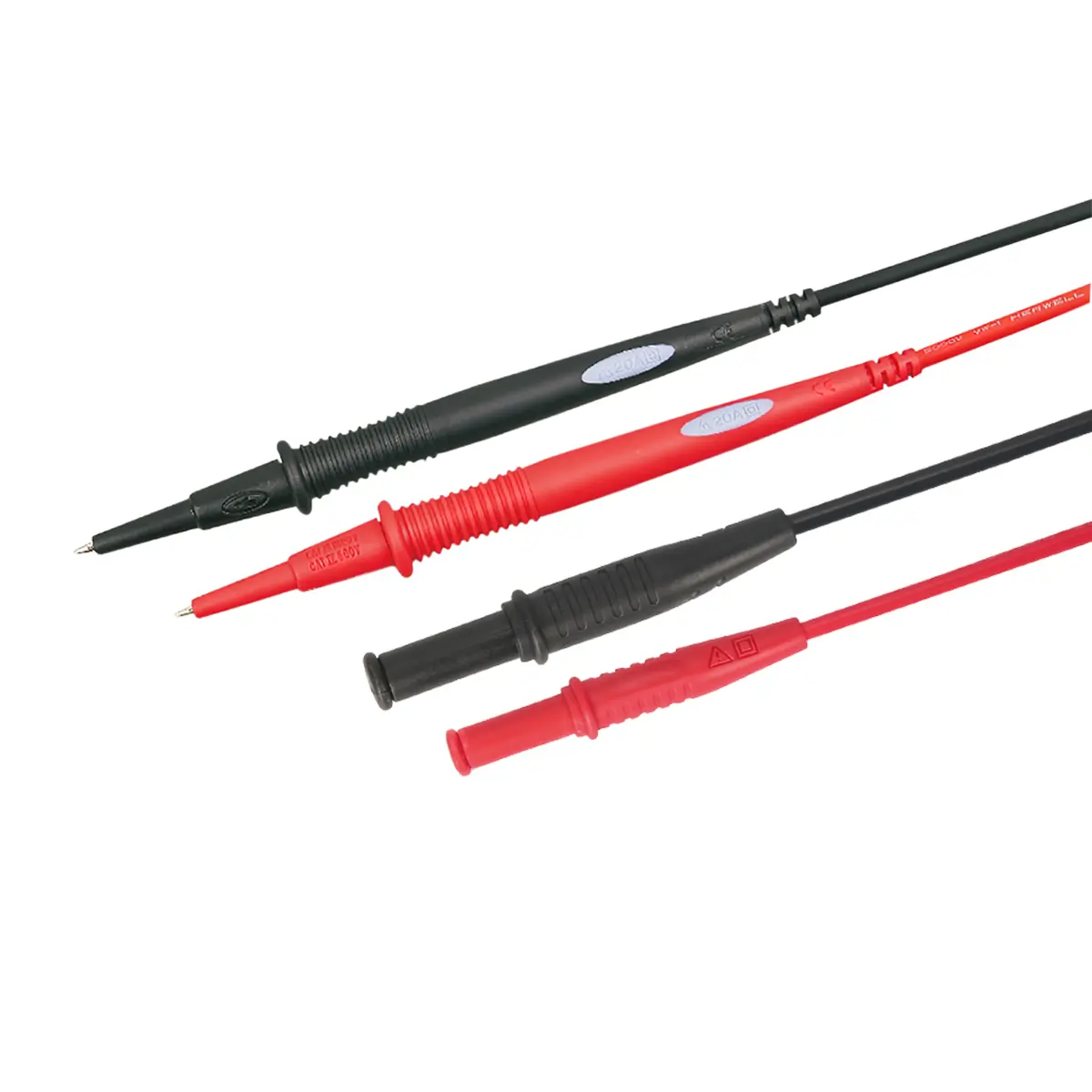 Проводники красного и черного цвета оснащены несъемными щупами с 17-миллиметровым жалом и колпачками-ограничителями. Кабели, как и большинство мультиметров , способны выдерживать токи номиналом до 10 А и соответствуют категории защиты от перенапряжений CAT III 1000 V. Благодаря использованию силиконовой изоляции допускается выполнять замеры при температурах от –15 до +40°C.