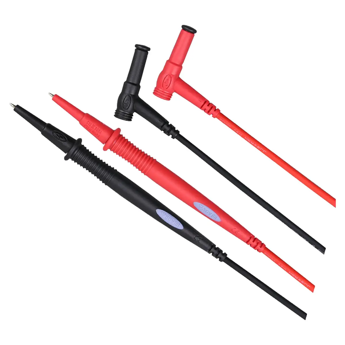 Двойная изоляция провода UL 16AWG, съёмный защитный кожух наконечника, перекрёстный тип входного разъёма с полной защитой, универсальные щупы, совместимы со всеми мультиметрами и клещами