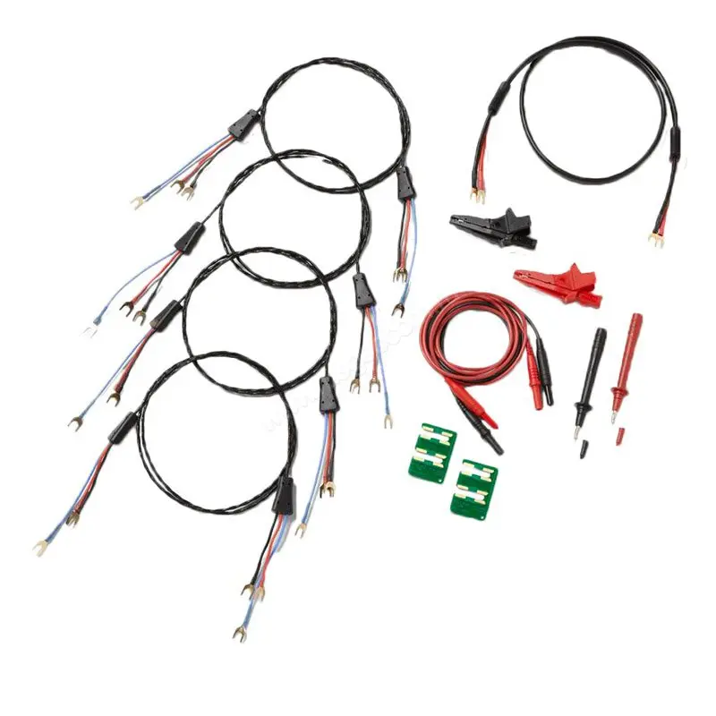Для проведения самых трудных и самых прецизионных измерений в комплекте Fluke 8508A-LEAD предусмотрено наличие высококачественных, обладающих низкой утечкой и низкими диэлектрическими потерями кабелей, изолированных тефлоном, с лепестковыми выводами из меди длиной 6 мм с золотым покрытием. Высокая изолирующая способность делает их идеальными для измерения сопротивления и тока, сводя к минимуму ток утечки и проблемы, связанные с накоплением зарядов; низкая емкость делает их идеальными для задач с применением переменного тока; а лепестковые выводы из меди с золотым покрытием длиной 6 мм гарантируют низкую термоэдс при проведении работ с напряжением постоянного тока и сопротивлением.
