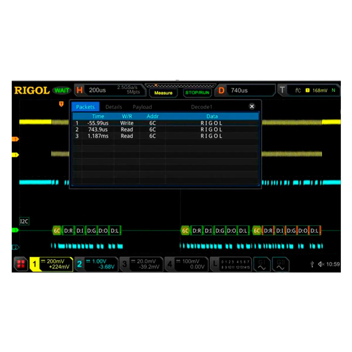 запуск и анализ сигналов последовательной шины I2C и SPI MSO8000-EMBD