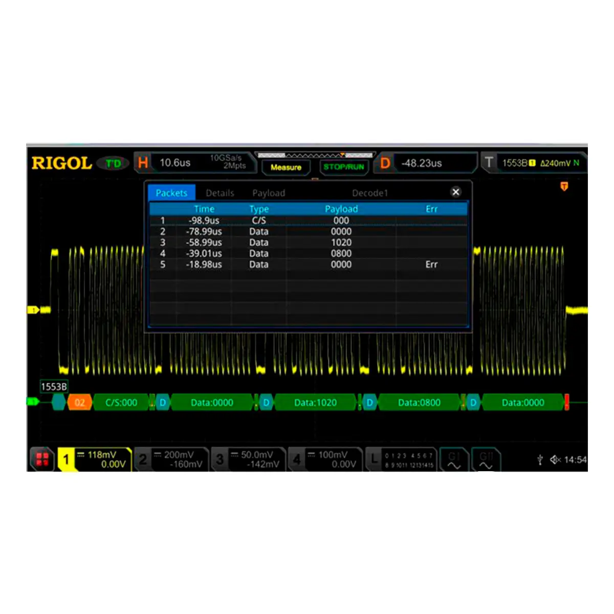 запуск и анализ сигналов последовательной шины MIL-STD-155