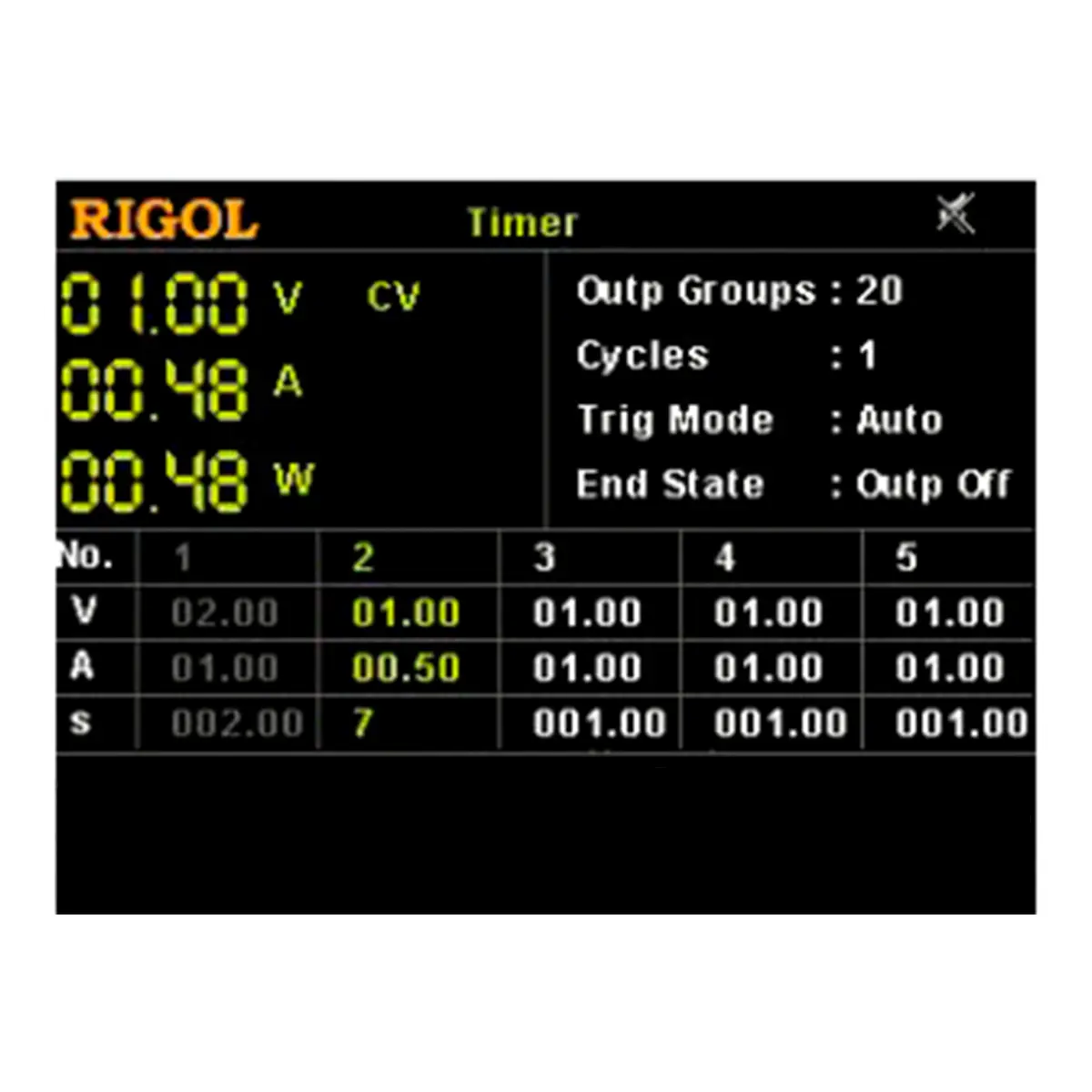 функция работы по списку (10 мс...99999 с) при максимальном количестве шагов 2048