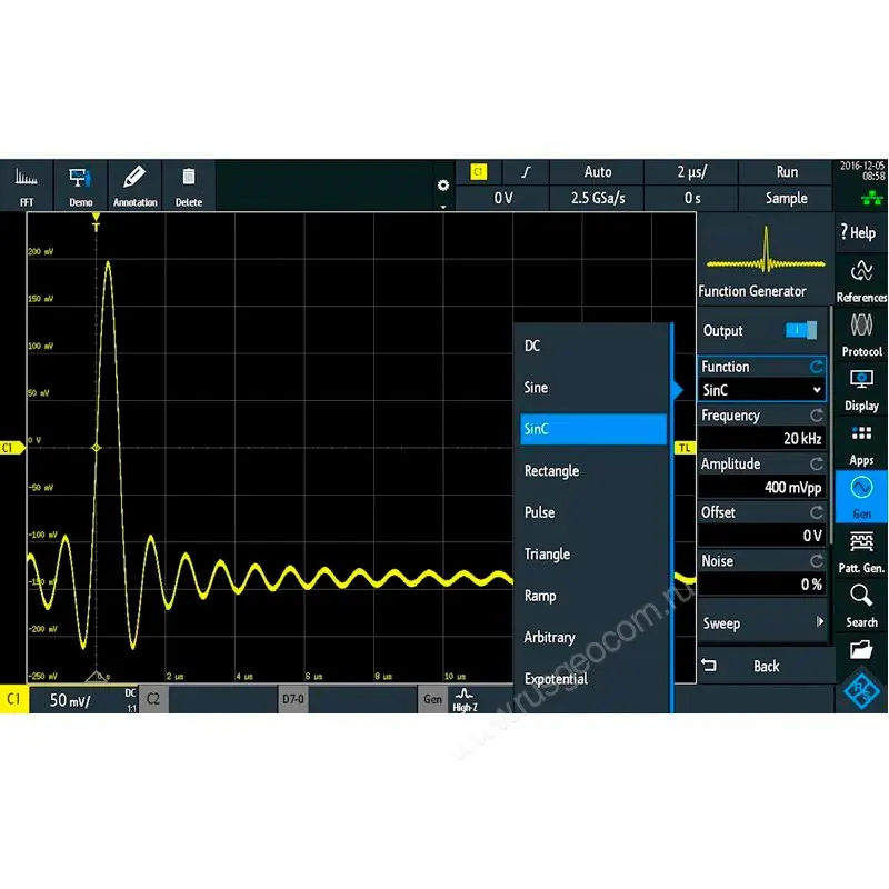Полоса пропускания: 50kHz , 250 MSa/s