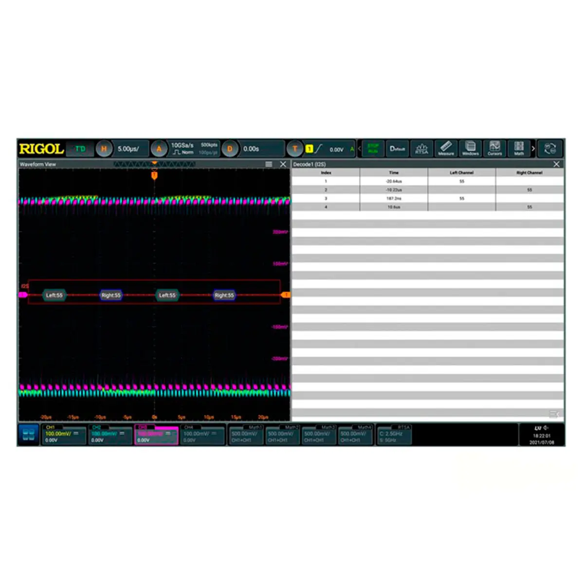 анализ и запуск по шинам I2S