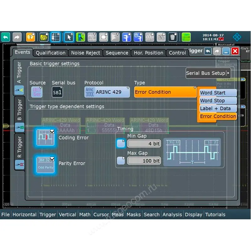 опция синхронизации и декодирования последовательных шин данных ARINC 42