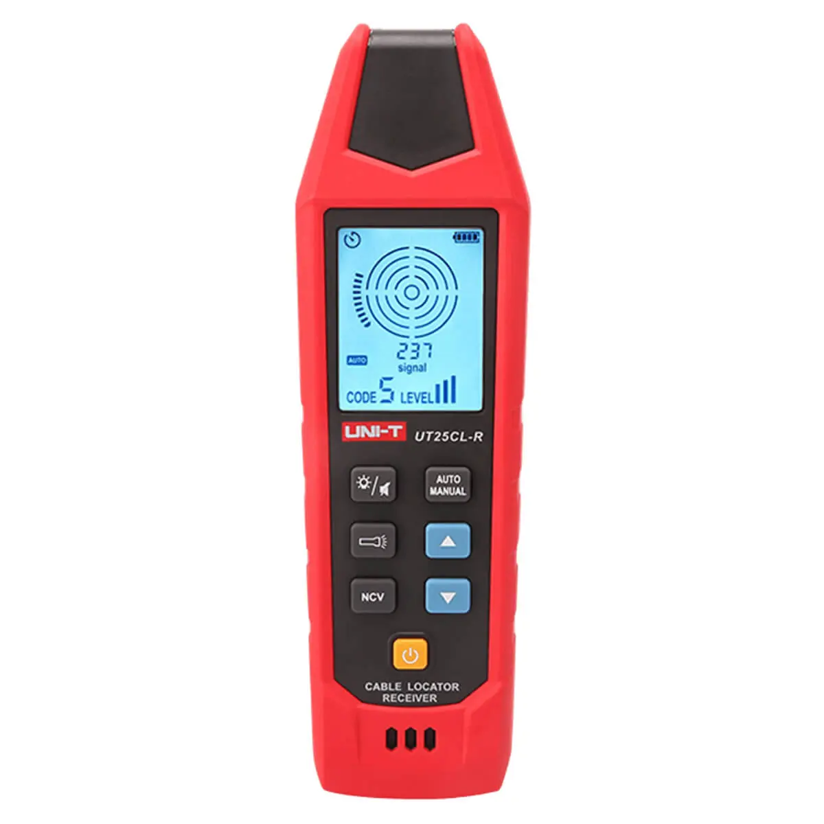Для визуального поиска или обнаружения трасс "на слух" локатор кабелеискателя UNI-T UT25CL снабжен ЖК дисплеем с круговой сегментной гистограммой и акустическим сигнализатором, который, при необходимости соблюдения режима тишины, может быть отключен. Генератор UT25CL-T поддерживает возможность работы как с обесточенными линиями, так и с кабелями под напряжением. Чувствительность приемника может устанавливаться на 9 разных уровнях – для обеспечения возможности эффективного поиска трасс на разной глубине, с минимизацией помех от внешних наводок. Безошибочное распознавание модулированных сигналов позволяет использовать с одним приемником одновременно до 8 генераторов с разными кодовыми настройками при отслеживании отдельных линий, поиске обрывов и замыканий, идентификации оконечного оборудования и т.п.