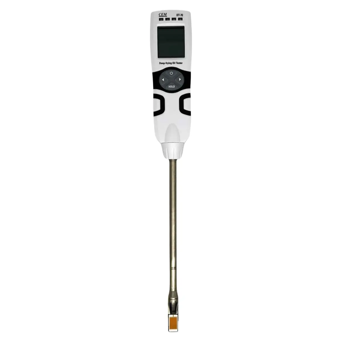Тестер масла CEM DT-70 — это портативный прибор для быстрого и точного определения степени деградации масла, используемого для жарки во фритюрах. Он предназначен для профессионалов в сфере общественного питания: ресторанов, кафе, фастфуда, пекарен и производственных кухонь. Устройство измеряет содержание продуктов разложения масла (TPM — Total Polar Materials) в процентах и температуру, что позволяет своевременно заменять масло и поддерживать высокое качество приготовления блюд.