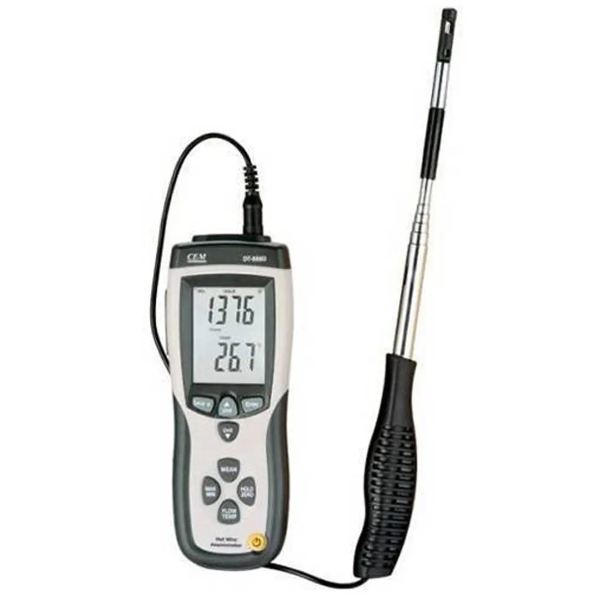 Портативный цифровой термоанемометр DT-8880, дополнительно оснащенный выносным щупом, используется для измерения очень низких скоростей воздушного потока и может применяться, например, для контроля или измерений характеристик систем вентиляции и кондиционирования.