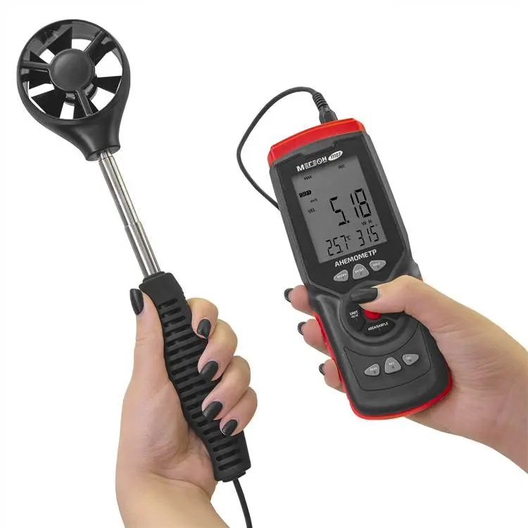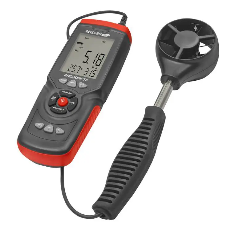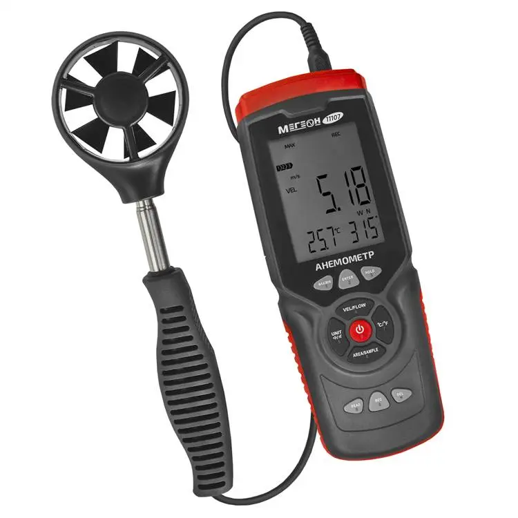 Современный дизайн анемометра сочетает в себе функциональность и стиль. Большой дисплей с подсветкой обеспечивает отличную видимость результатов измерений, а эргономичные формы корпуса и рукоятки зонда делают использование оборудования максимально удобным.