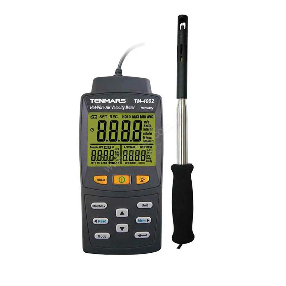 Анемометр Tenmars TM-4002 предназначен для использования в горнодобывающей промышленности, в строительстве, на производстве и в метеорологических целях. Представляет собой компактный прибор, с помощью которого можно измерить силу и скорость воздушного потока или других газов. Измерительный инструмент выполнен в виде управляющего модуля и отдельного зонда, что облегчает процесс выполнения работ.