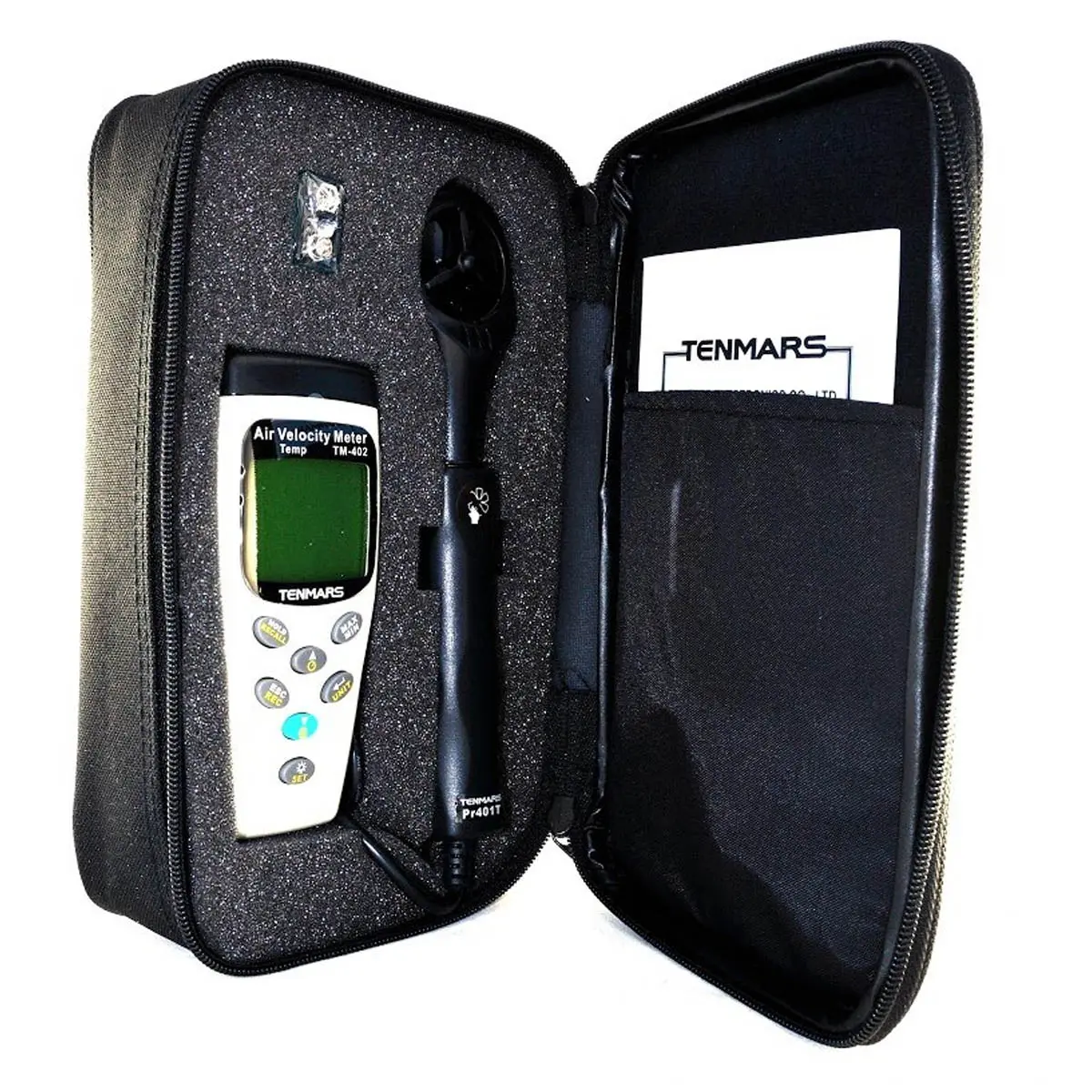 Анемометр Tenmars TM-402 – профессиональный измерительный прибор для определения скорости и температуры воздушного потока, а также вычисления различных показателей работы вентиляционных систем. Он используется специалистами для измерения скорости ветра и температуры на улице, а также для контроля параметров микроклимата в помещении и проверки эффективности работы вентиляционных систем, климатического оборудования, вытяжек и т.п.