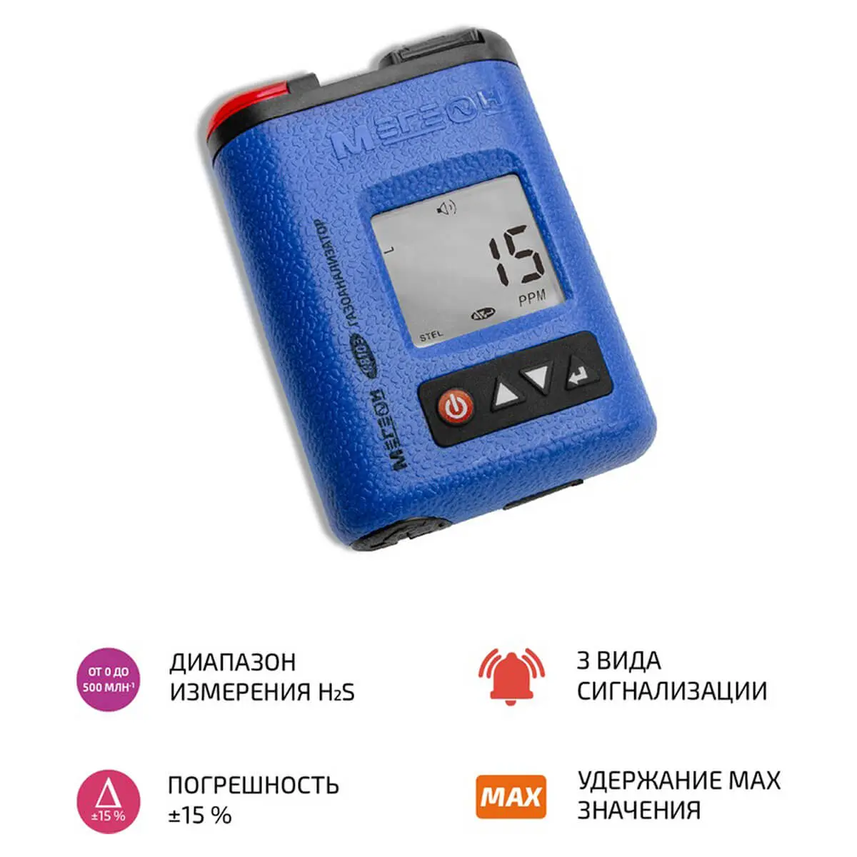 МЕГЕОН 08103 оснащен тройной системой сигнализации: при превышении заданных порогов концентрации сероводорода вы сразу получите визуальное уведомление на дисплее, услышите звуковой сигнал и почувствуете вибрацию. Такой комплексный подход гарантирует, что вы не пропустите тревожный сигнал даже в шумной или плохо освещенной обстановке.