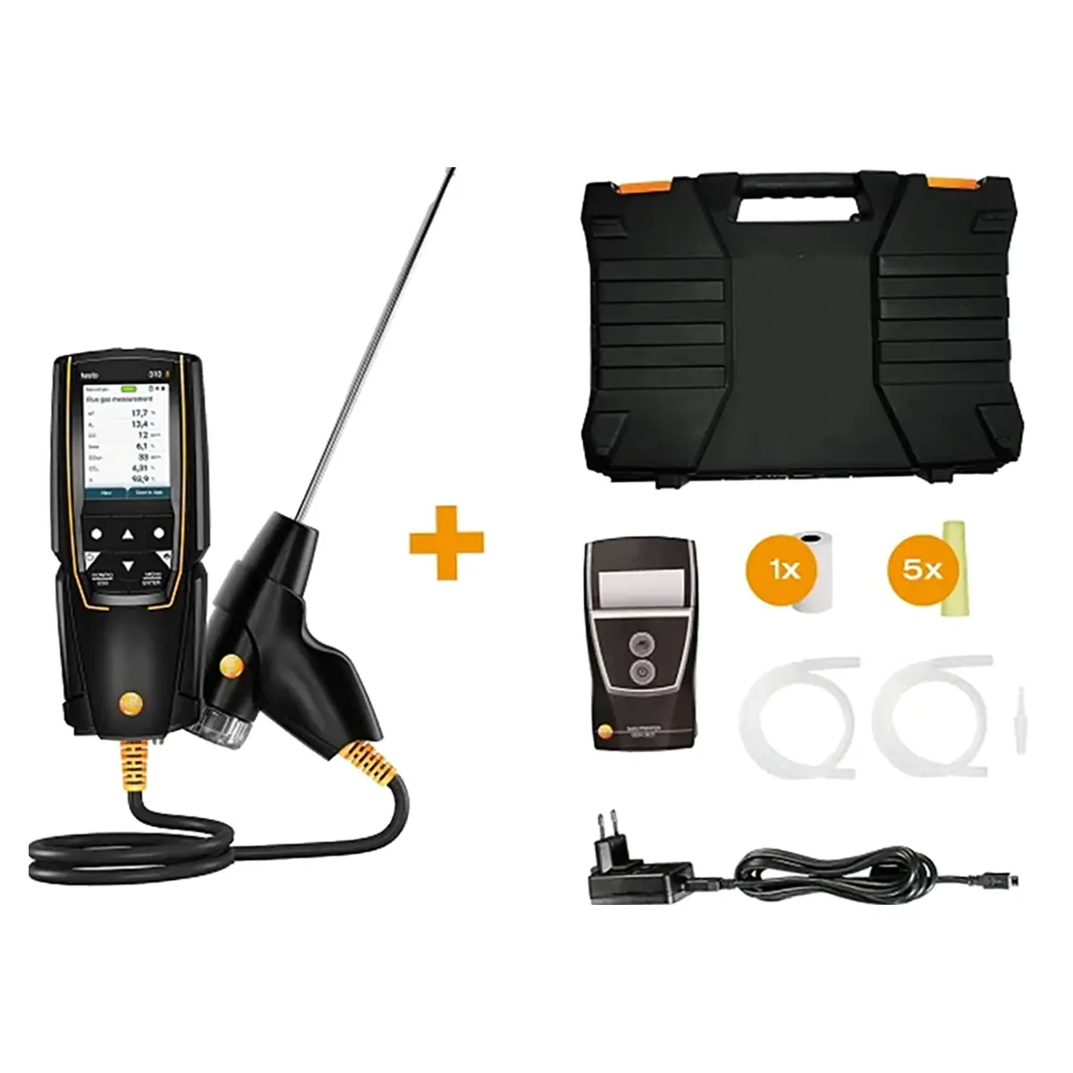 - Газоанализатор Testo : сам прибор, который обеспечивает точные измерения концентрации различных газов, что критически важно для настройки и проверки котлов и горелок.