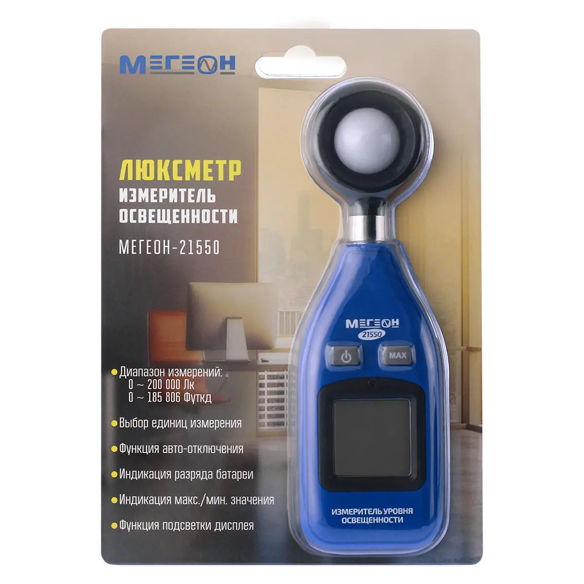 Портативный люксметр Мегеон 21550 представляет собой компактное измерительное устройство, которое широко применяется на различных строительных и промышленных объектах, а также в быту. Благодаря малому весу и небольшим габаритам, Мегеон 21550 позволяет быстро решать поставленные задачи. Главной задачей данного люксметра является контроль показателей освещенности в различных зданиях, постройках и помещениях.