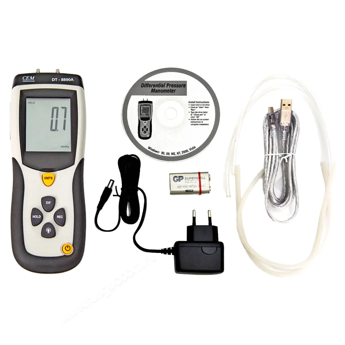 CEM DT-8890A легко подключается к компьютеру с помощью USB-кабеля, который идет в комплекте. Установив программное обеспечение с CD-диска, вы получите доступ к дополнительным функциям, таким как возможность визуализации данных в виде графиков. Это значительно упрощает анализ изменений давления во времени и позволяет лучше понимать динамику процессов.