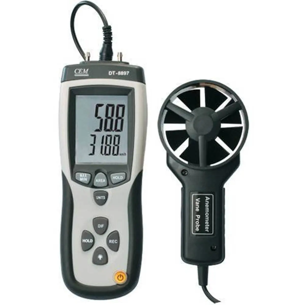 Дифференциальный манометр DT-8897 – это прибор, предназначенный для измерения дифференциального и избыточного давления, который также позволит вам измерить скорость, объемный расход и температуру воздуха. Манометр дифференциального давления DT-8897 заменит вам три инструмента – манометр, термометр и анемометр, совмещая возможности этих приборов в едином легком и компактном корпусе.