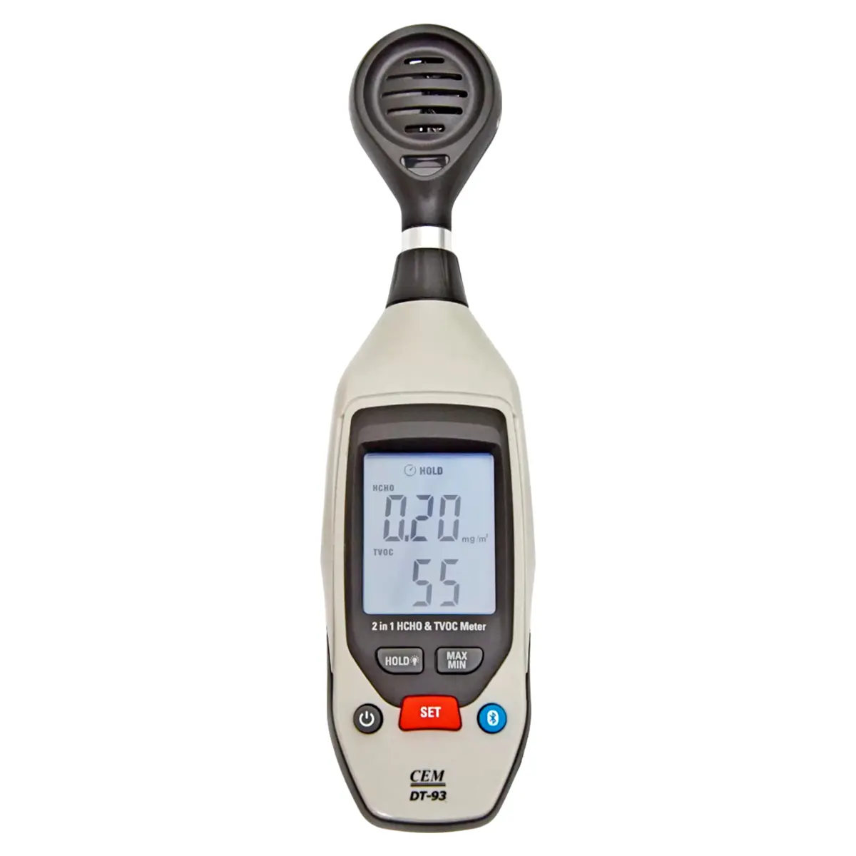 Электрохимический датчик обладает высоким быстродействием, позволяя отслеживать уровень TVOC и HCHO в реальном времени. Режим удержания показаний HOLD упрощает считывание результатов измерений. Прибор экологического контроля CEM DT-93 регистрирует наибольшую и наименьшую величину концентрации летучих органических веществ и формальдегида в режиме непрерывного мониторинга, которые можно просматривать, используя кнопку MAX/MIN, также рассчитывая показатель загрязнения воздуха API.