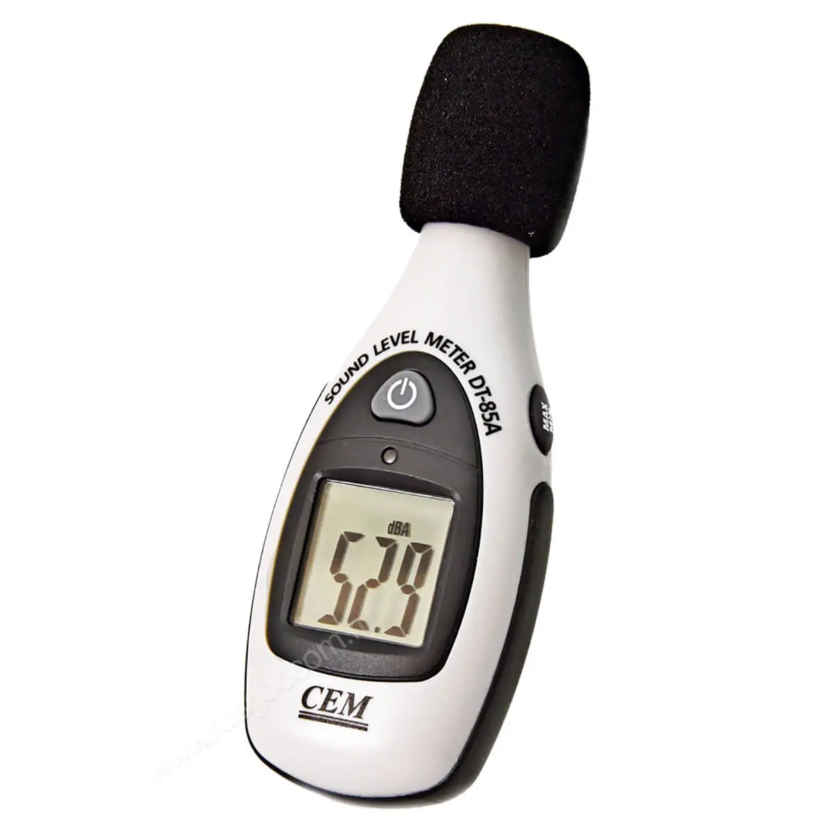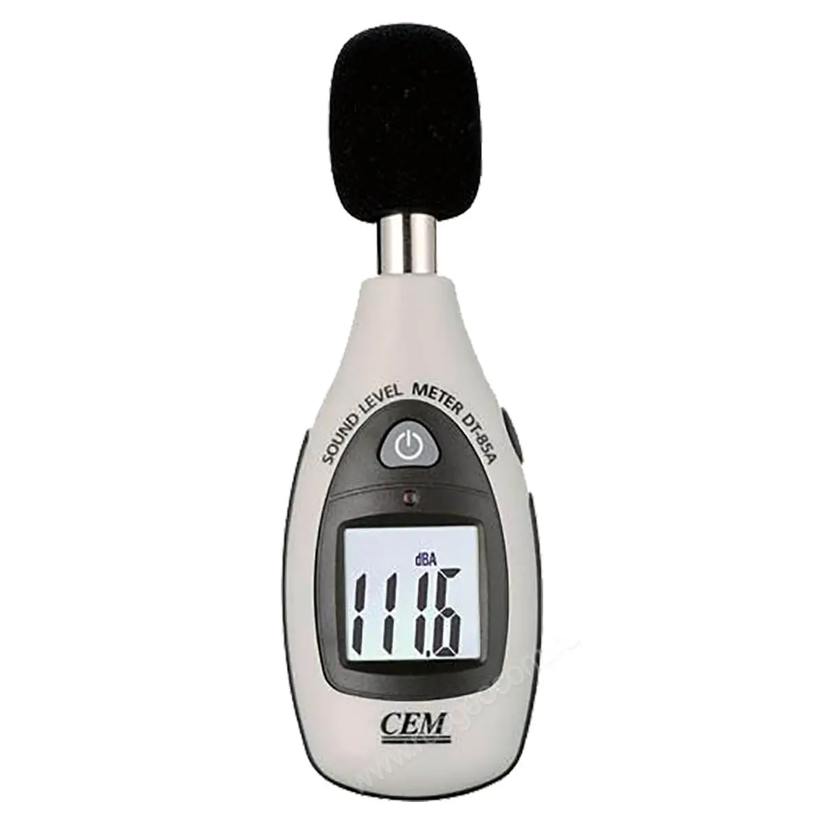 Инструмент оптимизирован для работы одной рукой и выполнен в корпусе такого же форм-фактора, как и другие изделия серии DT-8x. За счет скругленной обтекаемой формы обеспечивается удобство хвата. При этом кнопка просмотра максимальных и минимальных показателей, размещенная на боковой стороне, находится под большим пальцем кисти руки, удерживающей шумомер CEM DT-85A. Клавиша включения измерителя размещена на лицевой части. Комфортное снятие показаний с цифрового 3,5-разрядного дисплея обеспечивается в любых условиях благодаря наличию подсветки. Она включается и отключается автоматически с помощью датчика освещенности, расположенного над экраном.