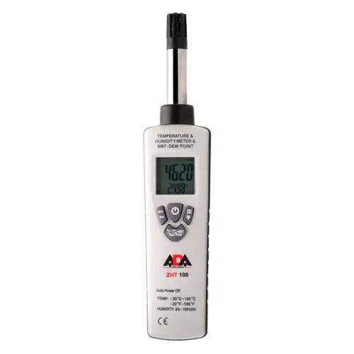 Измеритель влажности и температуры ADA ZHT 100 — цифровой прибор для измерения влажности и температуры 2 в 1! Разработан для совмещения функций измерителя влажности и измерителя температуры. Этот гигрометр для измерения влажности и температуры идеально подходит для практического применения как в профессиональной деятельности, так и в быту.