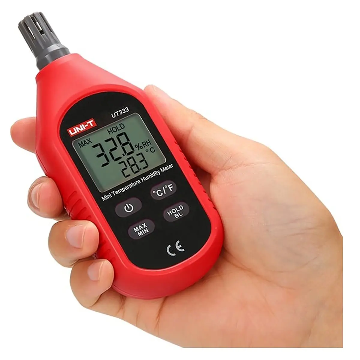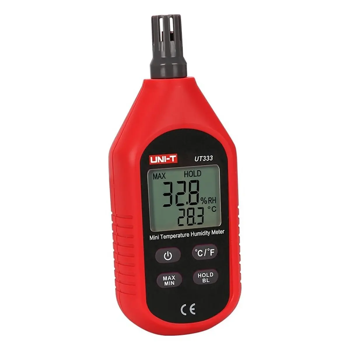 Термогигрометр UNI-T UT333 – устройство, с помощью которого можно с минимальной погрешностью измерять влажность и температуру воздуха. Предназначено для использования специалистами по проверке качества микроклимата в домах, квартирах и офисах. Прибор прост в использовании, имеет небольшие размеры и позволяет в течение 0,5с выполнить необходимые замеры и сохранить их для дальнейшего составления технической документации.