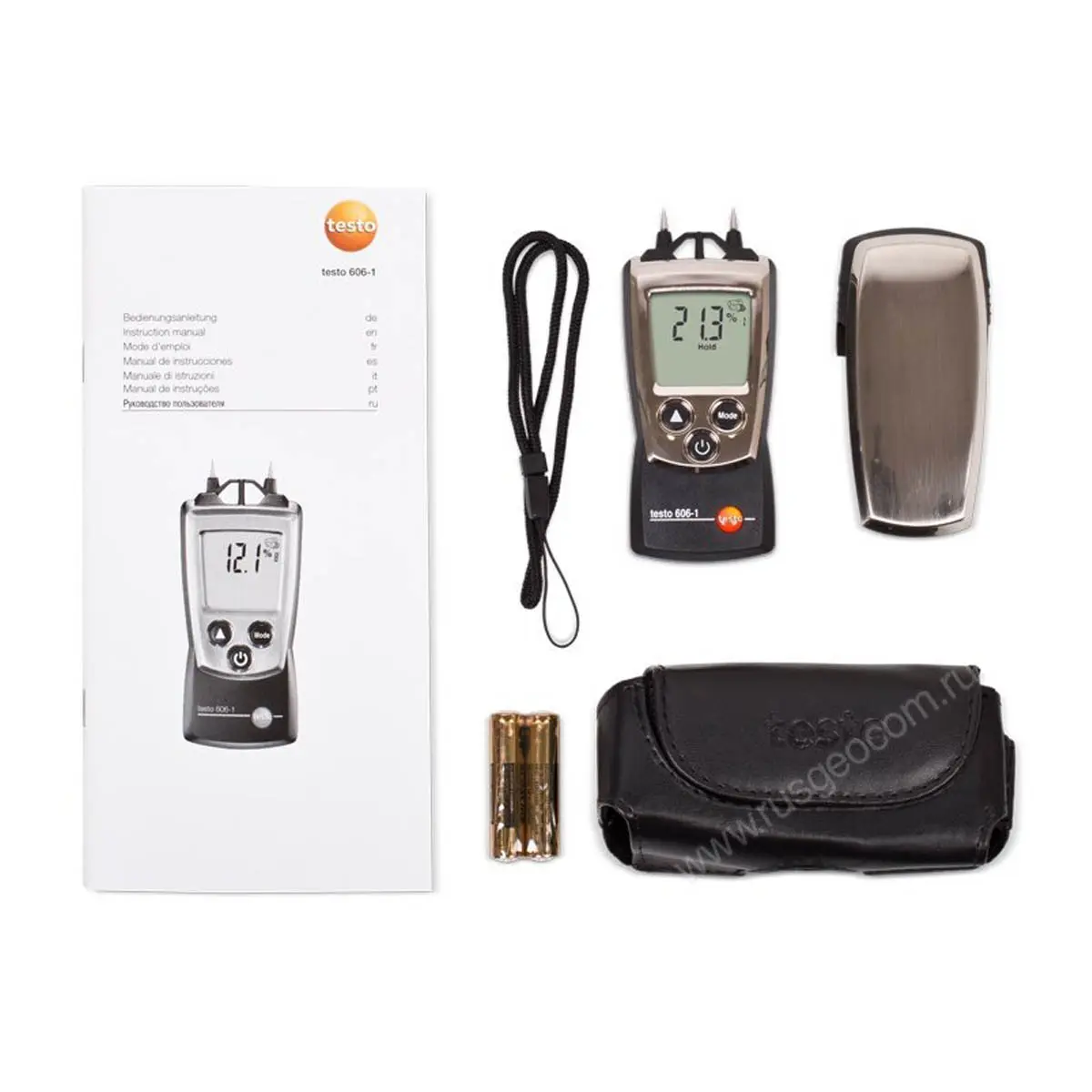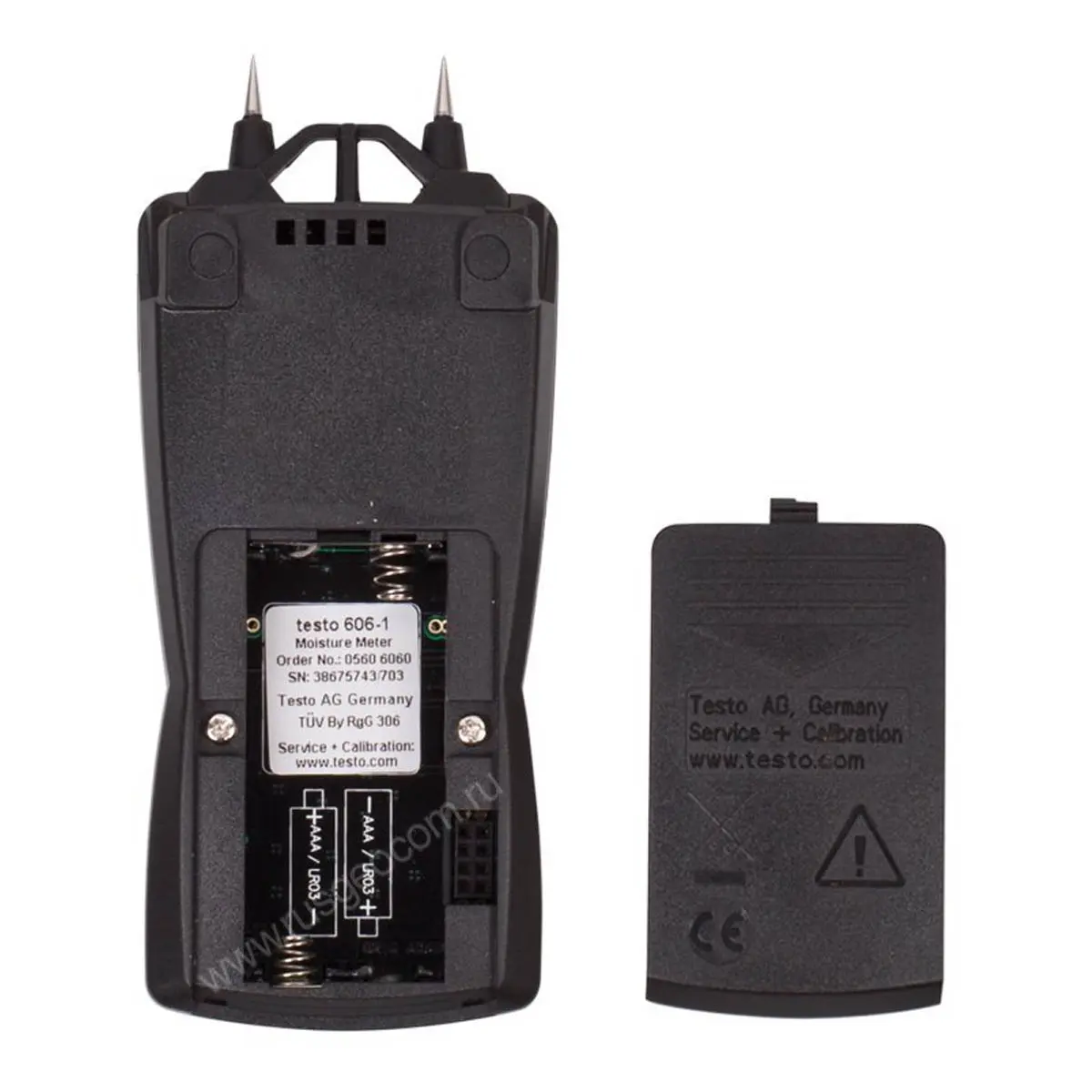 Цифровой гигрометр Testo 606-1 определяет показатели влажности объектов контроля путем измерения их сопротивления контактным способом, с помощью игольчатых электродов, исходя из характеристических зависимостей, определенных для конкретных видов материалов. Результаты измерения влажности отображаются в процентном отношении к весу материала, при этом на дисплее также высвечивается тип материала (пиктограмма и номер из списка, наклейка с которым размещена в защитной крышке). В зависимости от диапазона влагосодержания материалы объединены в 7 групп.