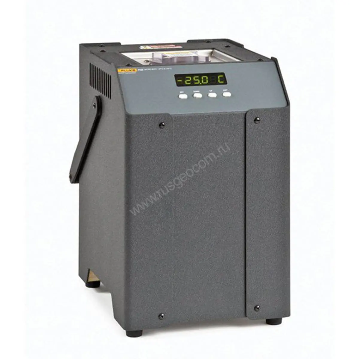 От младшей модификации Fluke 7103-TR-256 отличается увеличенным объемом микро-ванны и большей мощностью нагревателя, чем обеспечивается улучшенная стабильность термостата. Наличие внутреннего платинового сенсора RTD позволяет добиться высокой точности задания температурных показателей рабочей жидкости, а за счет ее принудительного перемешивания достигается требуемая однородность теплового поля. Управление прибором производится с использованием встроенного контроллера температуры Hart Scientific гибридного типа, который совмещает в себе преимущества цифровых и аналоговых устройств.