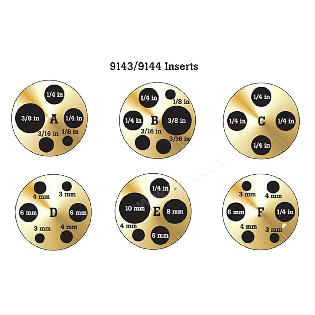 Прибор комплектуется вставкой типа “А” с дюймовыми отверстиями диаметром ⅜, 3/16, ¼ и ⅛. При необходимости всегда можно дополнительно оснастить калибратор гильзами другого формата для расширения спектра решаемых задач.