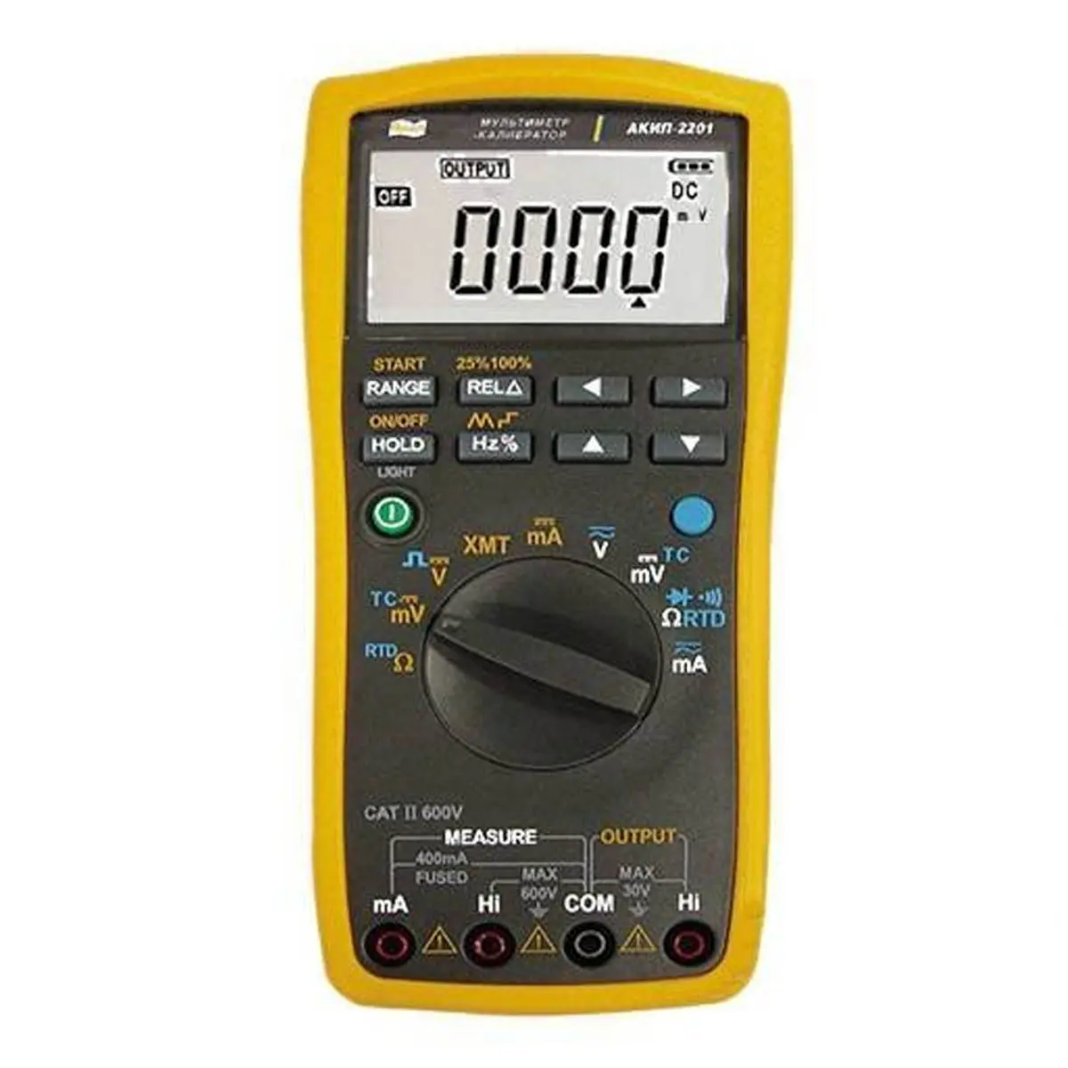 Мультиметр-калибратор АКИП 2201 – это устройство универсального назначения, с помощью которого можно измерять параметры работы электрических сетей и оборудования, а также калибровать и проверять на работоспособность датчики и сенсоры, различное промышленное оборудование.